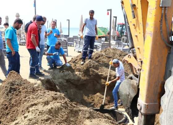 Çiftlikköy’ün Mokamp sahilinde bir işletmenin kaçak olarak çektiği hattın tıkanması sonrasında yaşanan taşkına Çiftlikköy Belediyesi ve Yalova Atıksu Kanalizasyon Alt…